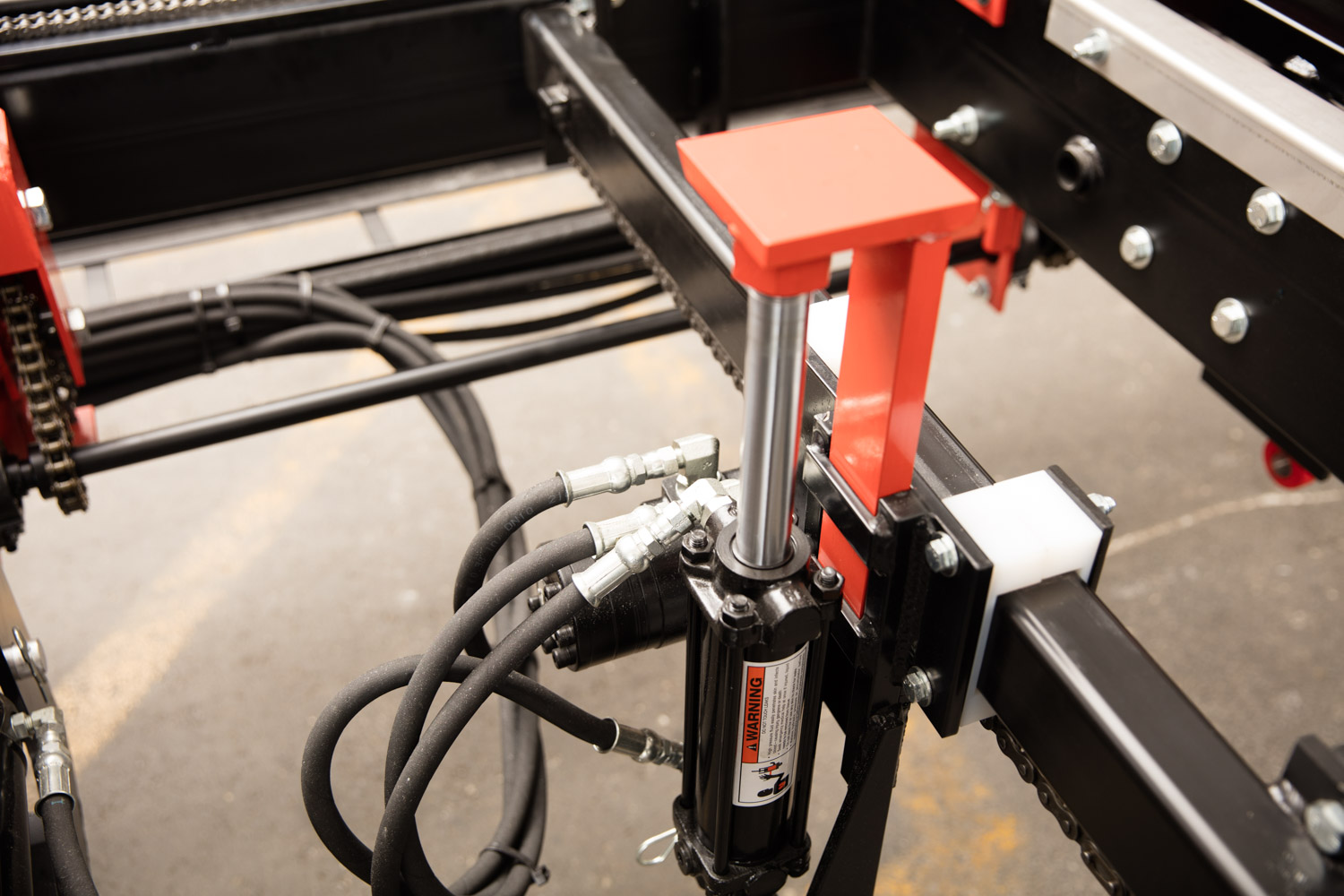 큰 통나무를 완벽하게 제어하기 위한 이중 양방향 체인 통나무 터너. 거대한 #100 체인과 견고하게 가공된 터너 블록을 사용하면 완벽한 위치 지정을 위해 통나무를 양방향으로 쉽게 돌릴 수 있습니다.