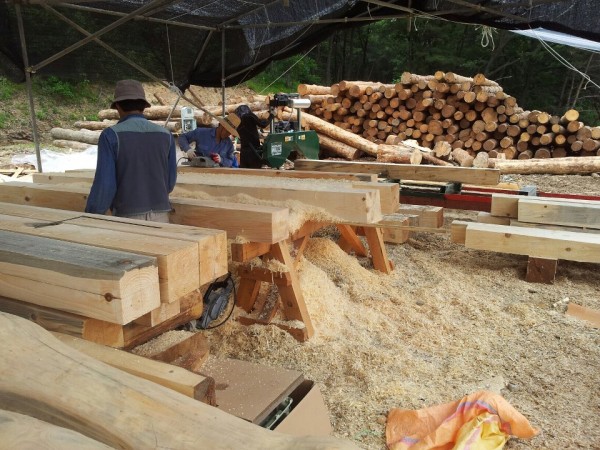 우드랜드밀 수평제재기로 여러 부재.기둥 ,선자를 직접제재하여 한옥을 짖고있습니다