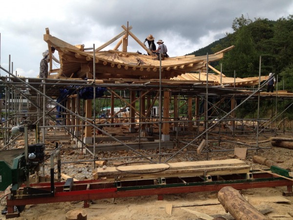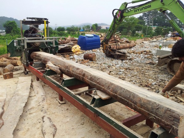 우드랜드밀 수평 제재기로 한옥자재를 현장에서 제재하여 한옥 30평 1달 만에 완성 하였습니다