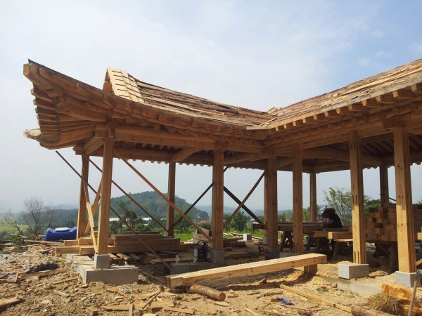 우드랜드밀 수평제재기로 대들보,기둥,선자,개판,.동자, 서까래기타 부재를 직접 제재하여 30평 전통 한옥 빌더하였습니다